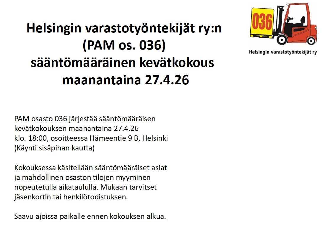 Helsingin varastotyöntekijät ry. 036 on Palvelualojen ammattiliittoon kuuluva kaupan alan varastotyöntekijöiden ammattiosasto, joka edustaa jäseniään koko Uudenmaan alueella